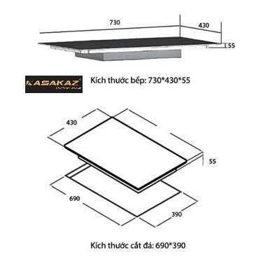 - Kích thước khoét đá: 680 x 390mm